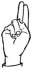 На ћирилици написано РАДНА СРЕТЕНИЈЕВИЋ састоји се из 17 слова [?]. Исписано ћириличном једноручном азбуком за глувонеме: